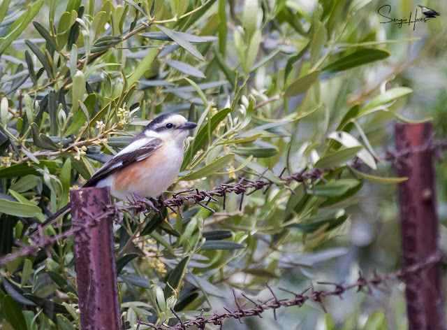 Alcaudón de tamaño parecido a las otras especies de alcaudones europeos, con una longitud de 18 cm, el dorso es completamente negro, con la frente y escapulares blancos, píleo negro, los flancos naranjas, estos en la hembra más pálidos y más claros. Posee los tonos grises sin marrones, de obispillo oscuro y la cola larga. Suele ocultarse entre matorrales. En Europa se distribuye sólo por Grecia oriental, en la Turquía europea y al sur de Bulgaria, asi como en el suroeste de Asia. Habita en bosque mediterráneo abiertos, zonas de arbustos con arboles, olivares, jardines, a menudo en laderas de colinas y montañas. Se alimentan de insectos principalmente, saltamontes y escarabajos, pero incluyen lagartijas y pequeños pájaros, sobre todo los agotados por la migración.
